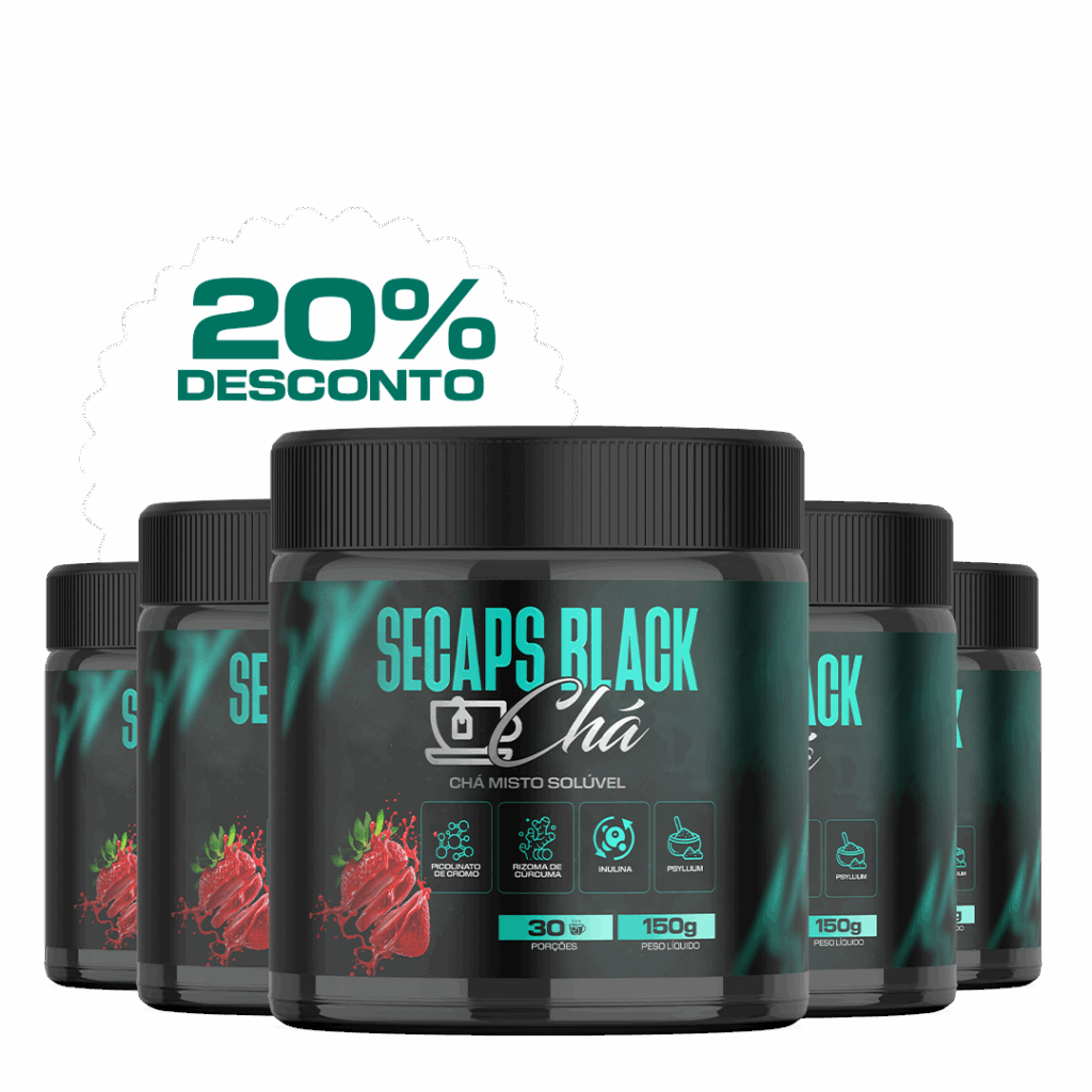 O Secaps Black Chá é diferente de tudo o que você já experimentou. É o único chá que reúne uma combinação exclusiva de ingredientes naturais poderosos, que trabalham em perfeita sinergia para acelerar o metabolismo, reduzir o inchaço e facilitar a queima de gordura de forma contínua — ajudando você a conquistar um corpo mais leve e saudável.