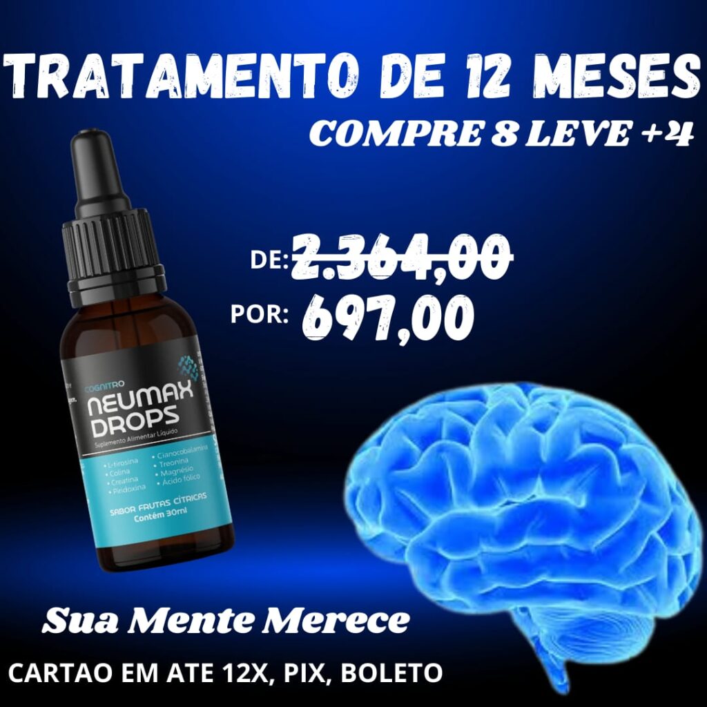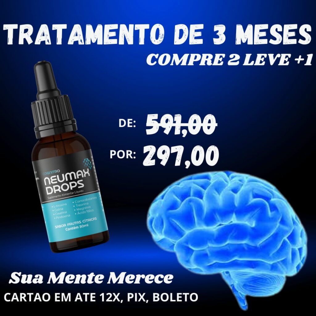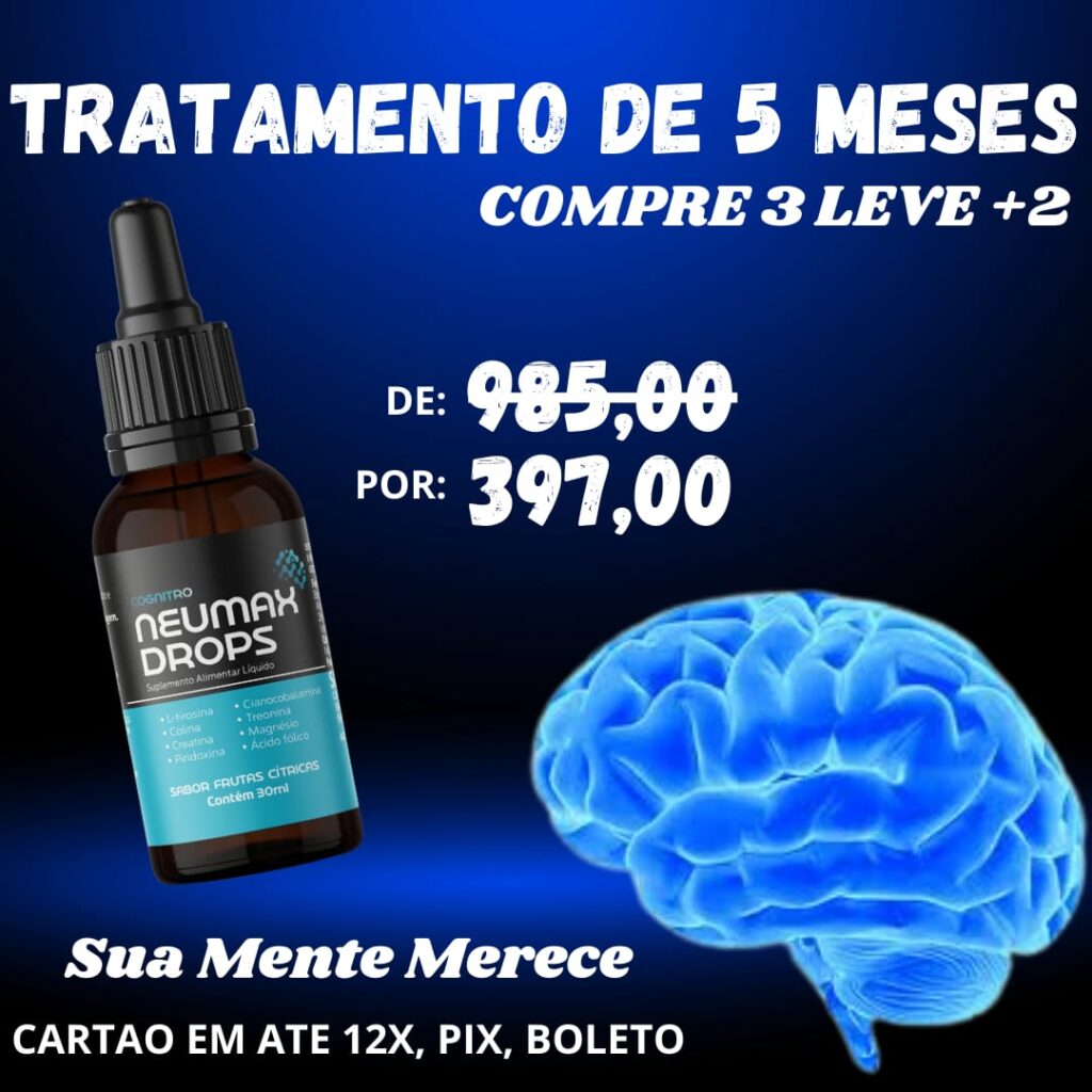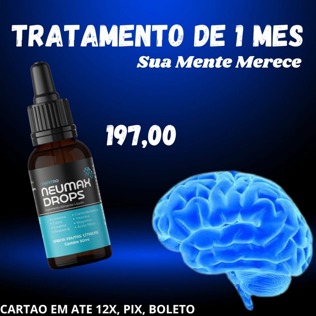 Com ingredientes como L-tirosina, colina e creatina, o Neumax Drops auxilia no desempenho mental e na clareza cognitiva. As vitaminas do complexo B, associadas ao magnésio e ao ácido fólico, contribuem para o metabolismo energético e o equilíbrio neurológico. A praticidade do formato em gotas permite absorção rápida e uso simples no dia a dia.