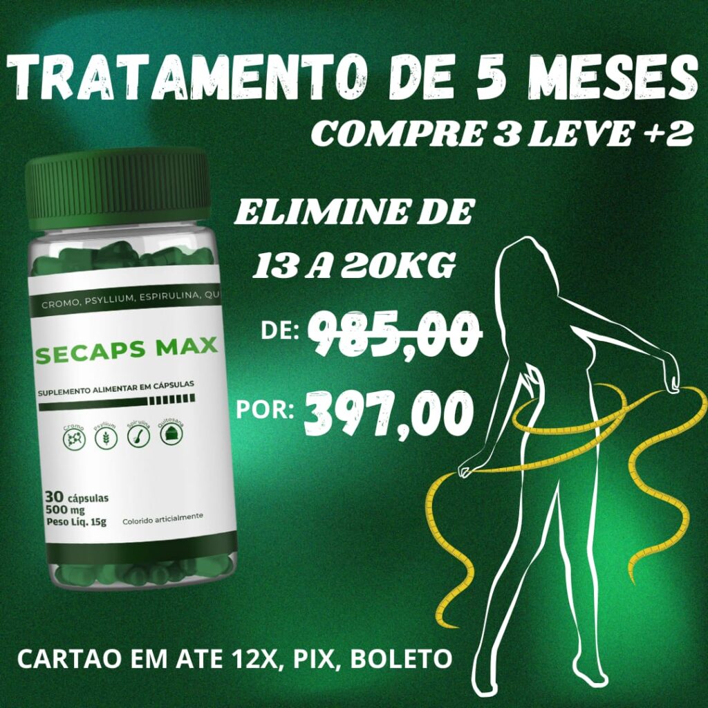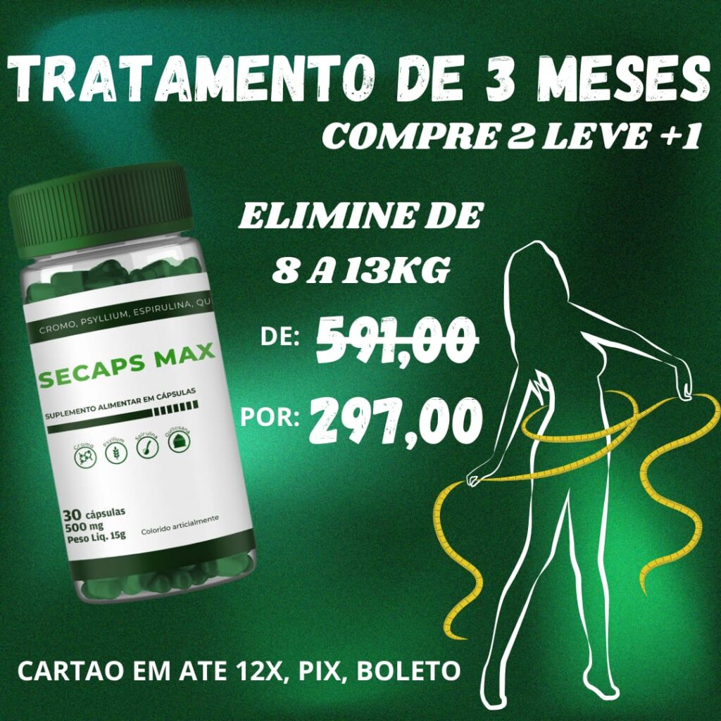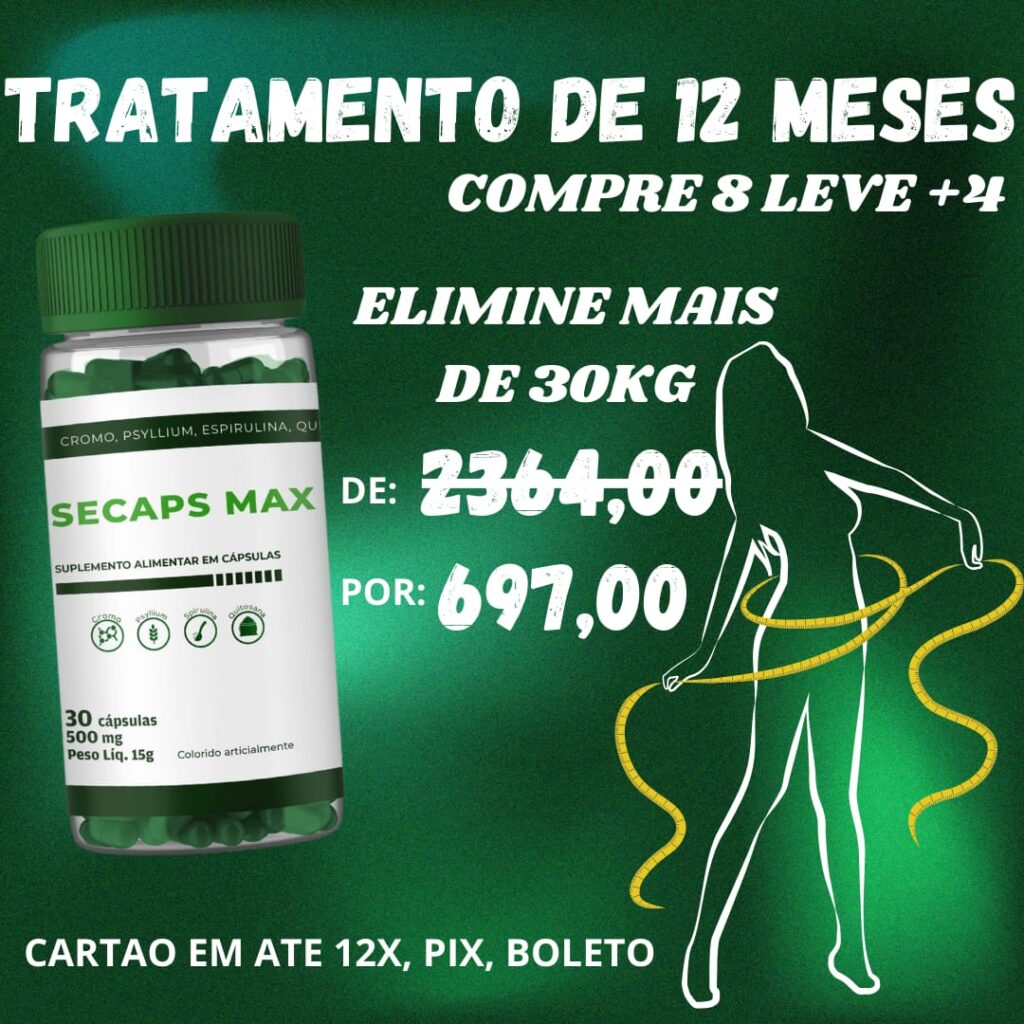 Secaps Max é um suplemento desenvolvido para auxiliar no controle do apetite, no funcionamento intestinal e no equilíbrio metabólico. Sua fórmula combina ingredientes amplamente utilizados em protocolos de controle alimentar, como psyllium, quitosana, spirulina e cromo, atuando de forma estratégica no dia a dia.